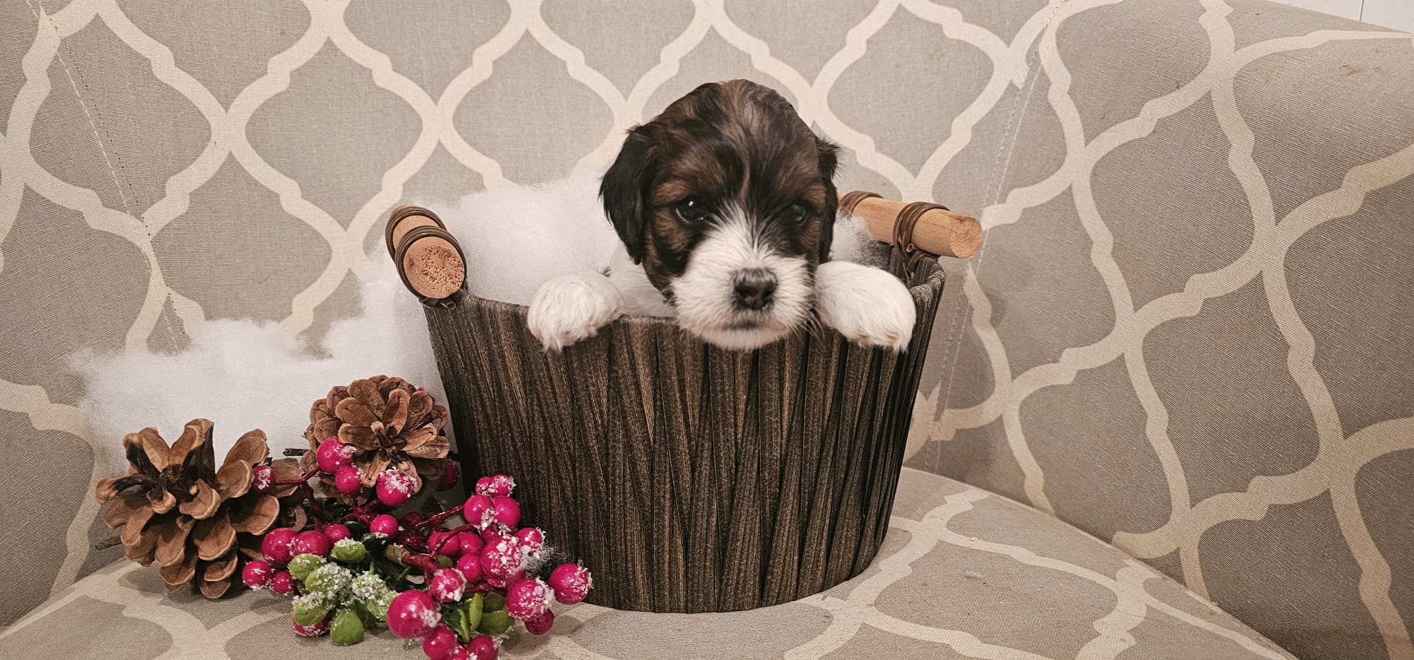 # 13 Bella/Archie - Cockapoo female, nice deep red coat with white markings $2000