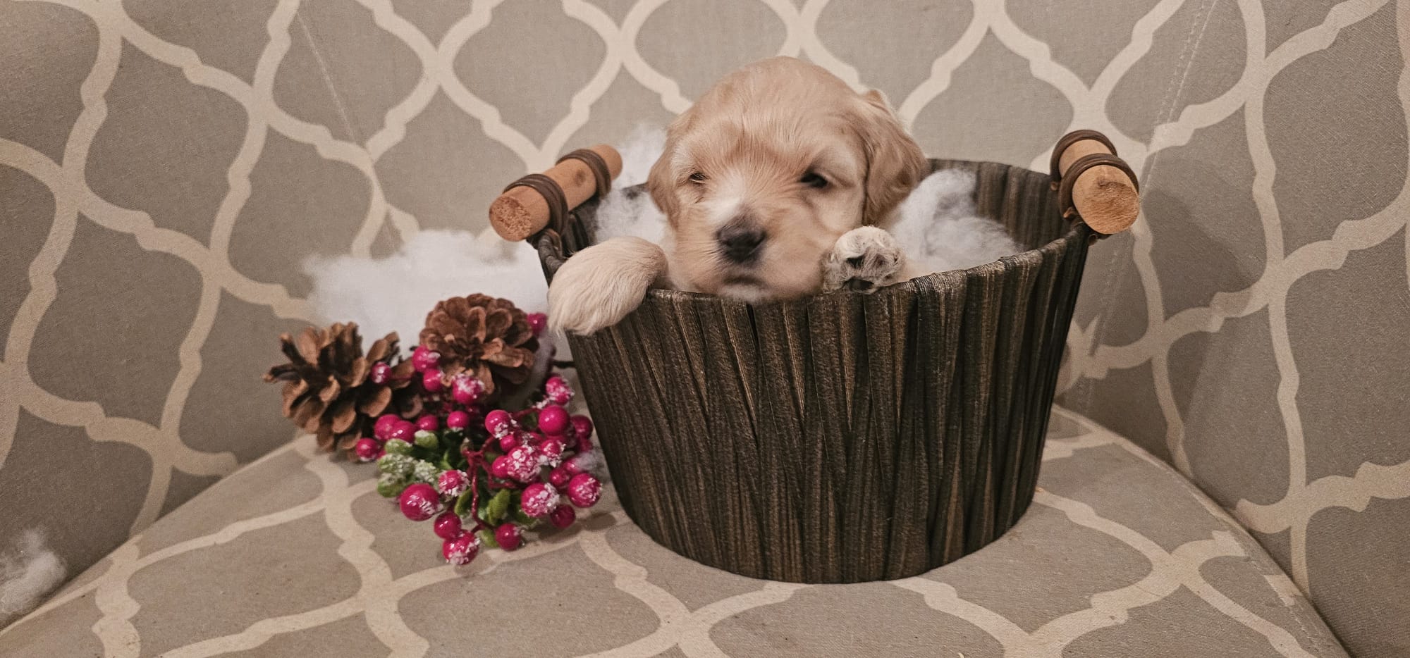 # 5 Royal/Toby - Handsome blonde cockapoo male, he has some marbling along his back, straighter hair. $2000 (Samuel)