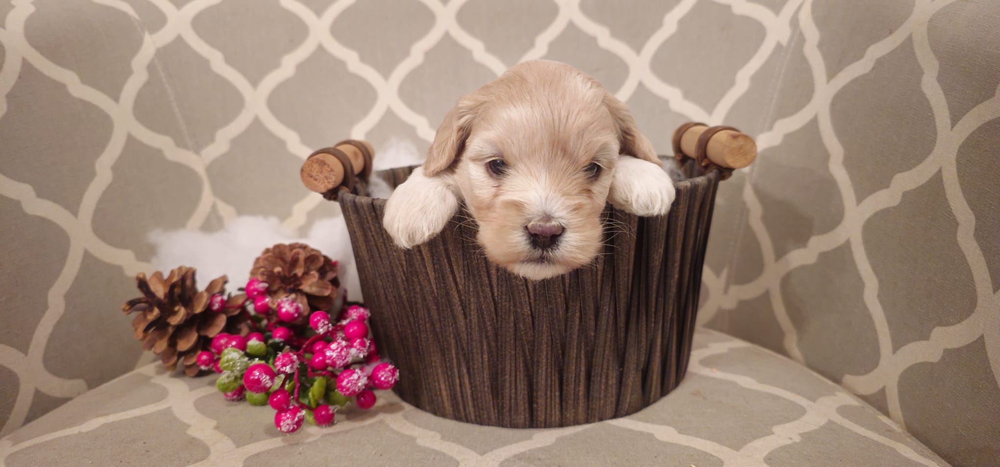 # 14 Bella/Archie - Super cute blonde female cockapoo with lots of white! $2000