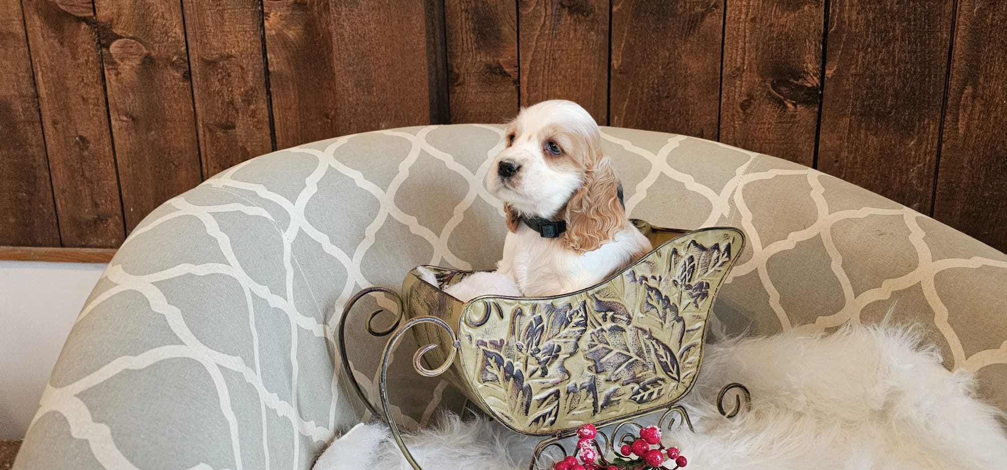 # 23 Abby/Simba - Pretty cream Cocker Spaniel female with a few red spots on head $2000 KIm