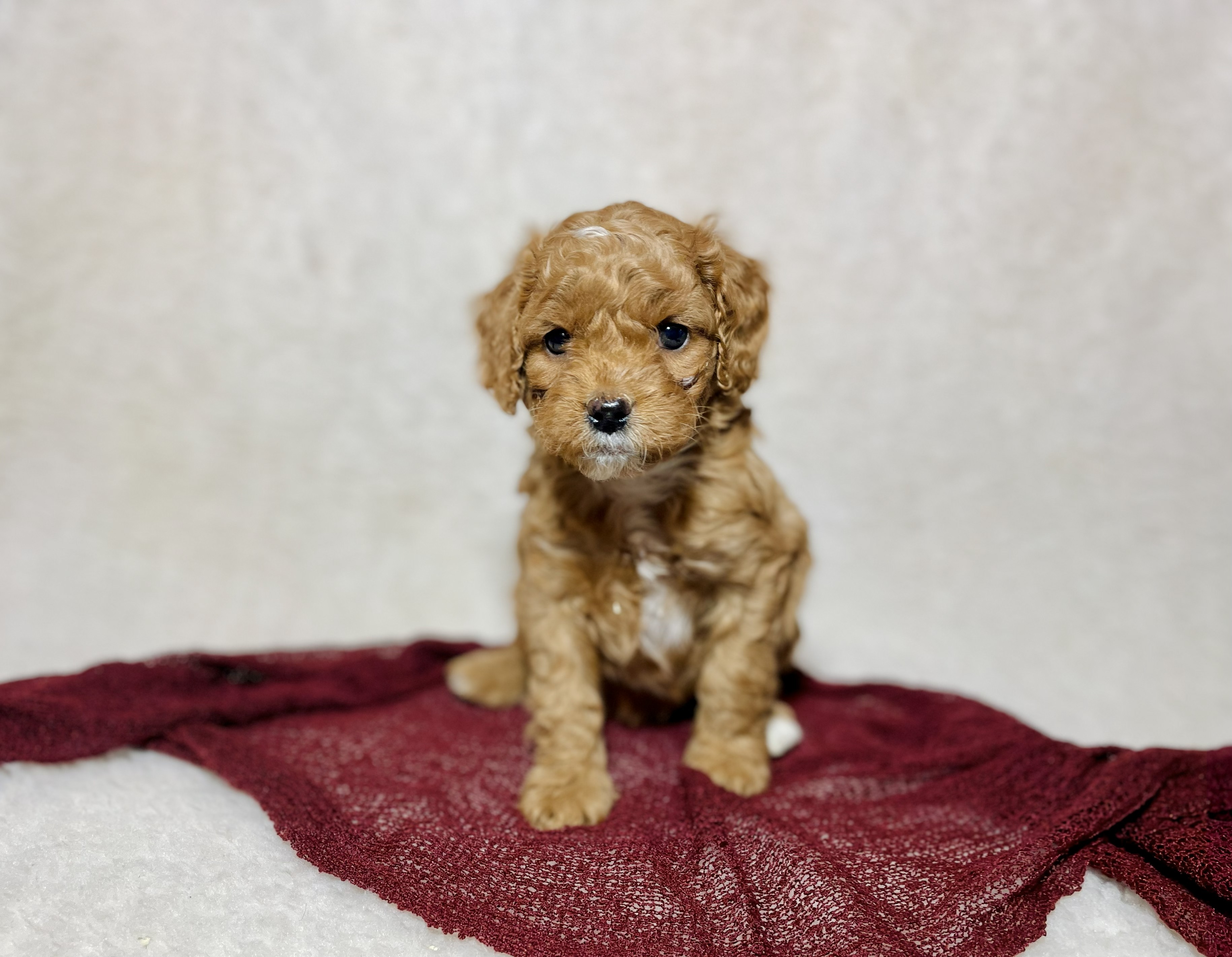 # 1 Royal/Toby - Beautiful red cockapoo female, she has a full white chest and white spot on forehead! $2000 (Karen)