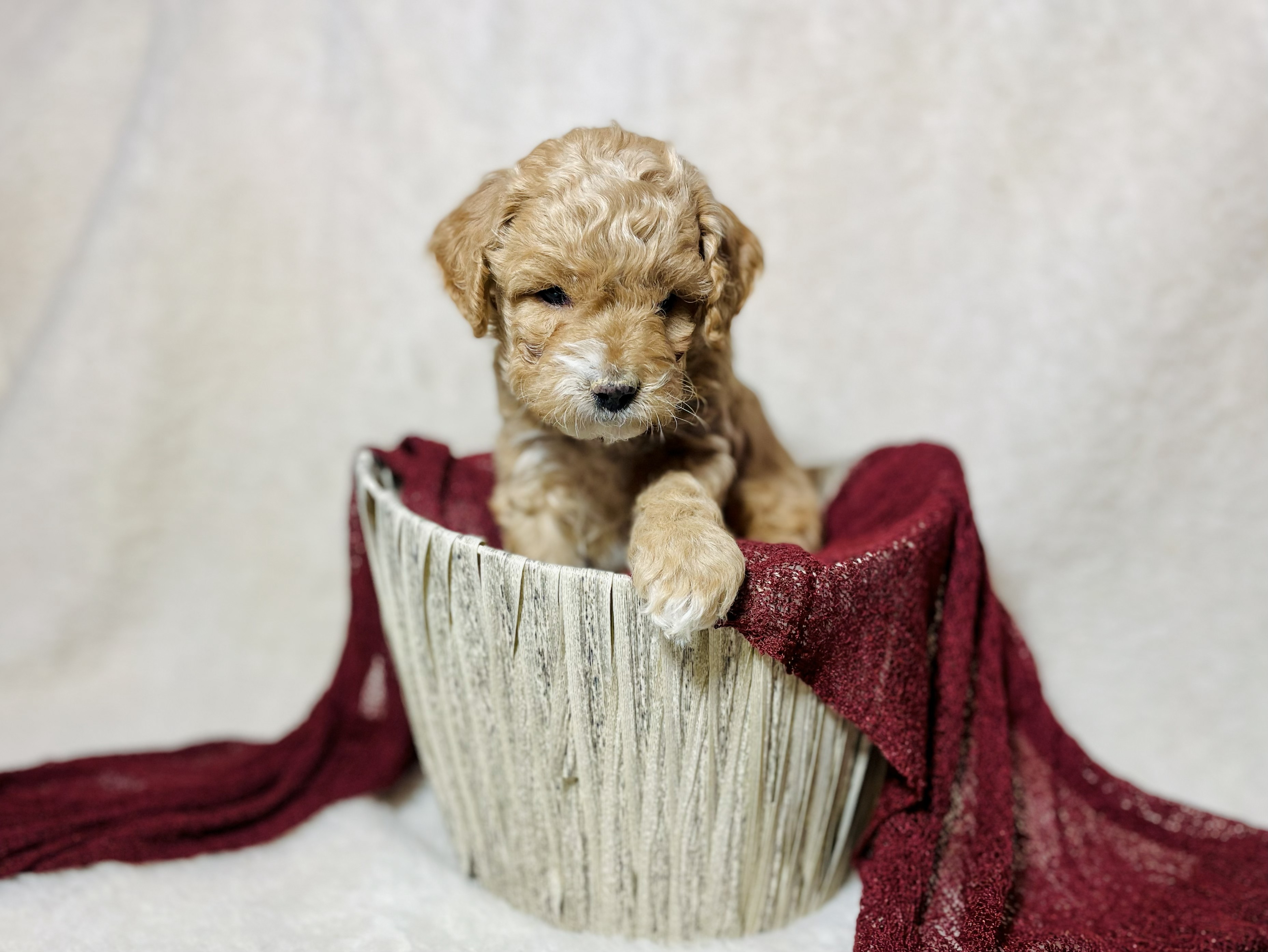 # 5 Royal/Toby - Handsome blonde cockapoo male, he has some marbling along his back, straighter hair. $2000 (Samuel)