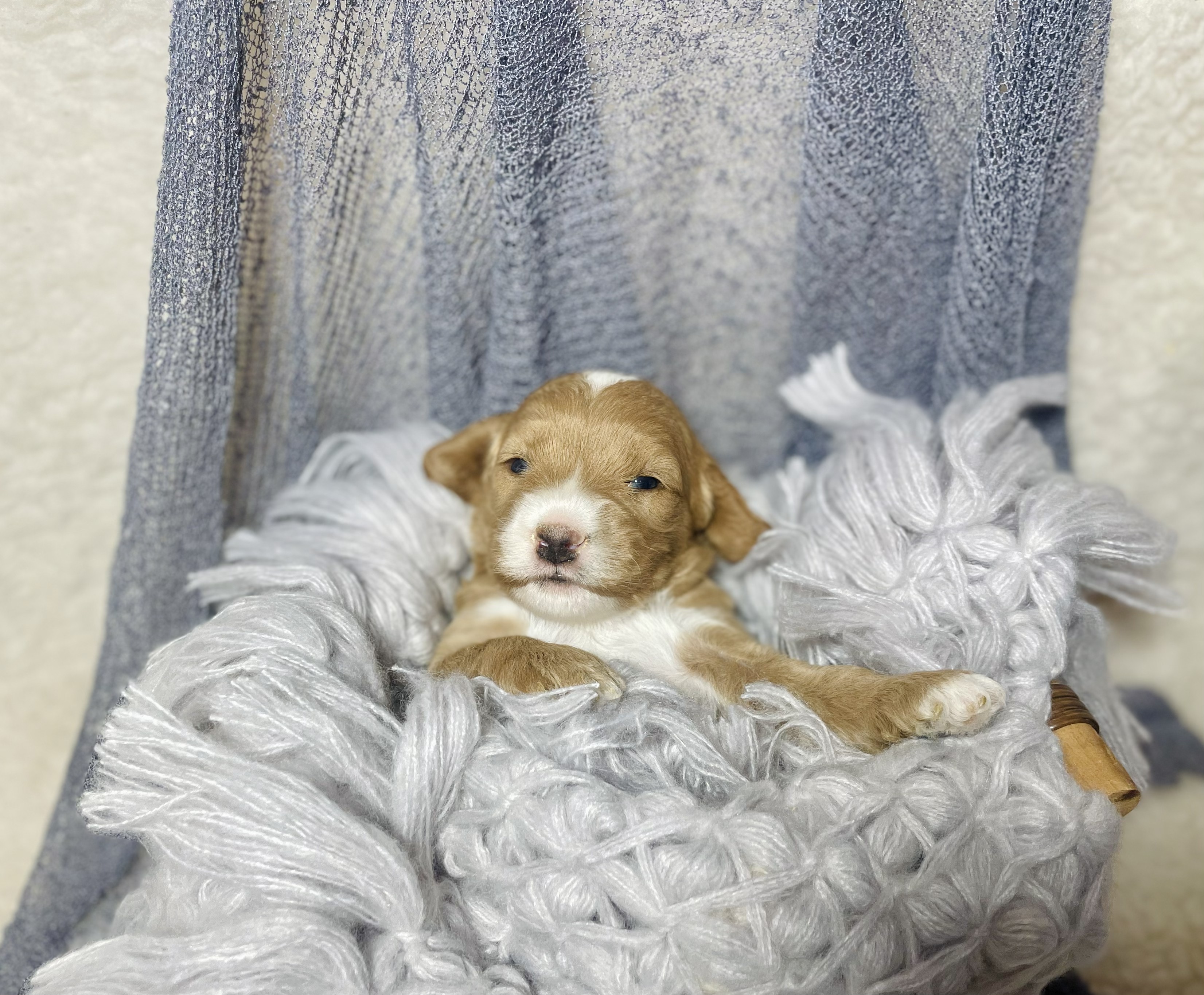 # 15 Bella/Archie - Super handsome red male cockapoo, he has a perfect white heart on his head! $2000 ( Robyn)