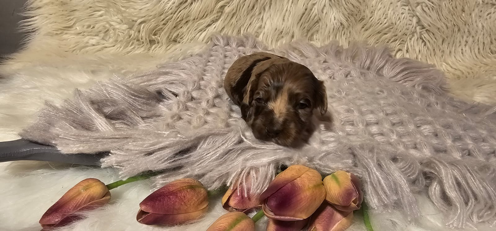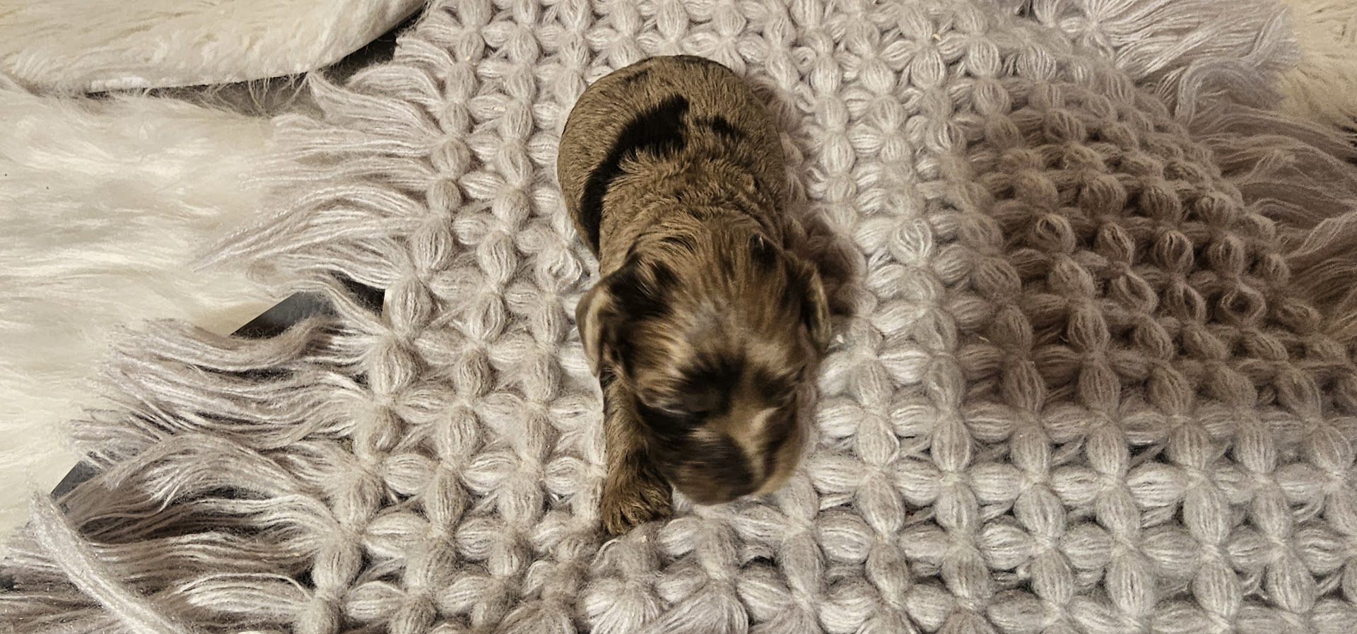 #2 Mika and Jace- Smallest female in the litter, she is a nice looking chocolate merle cockapoo! $2000 (Yuliia)