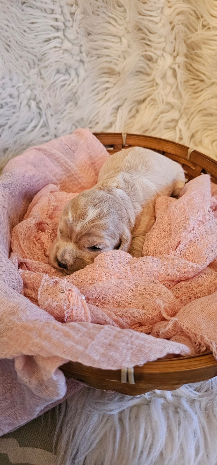 #8 pure cocker spaniel girl blonde in color,docked tail $2000 (Kelly Clark)