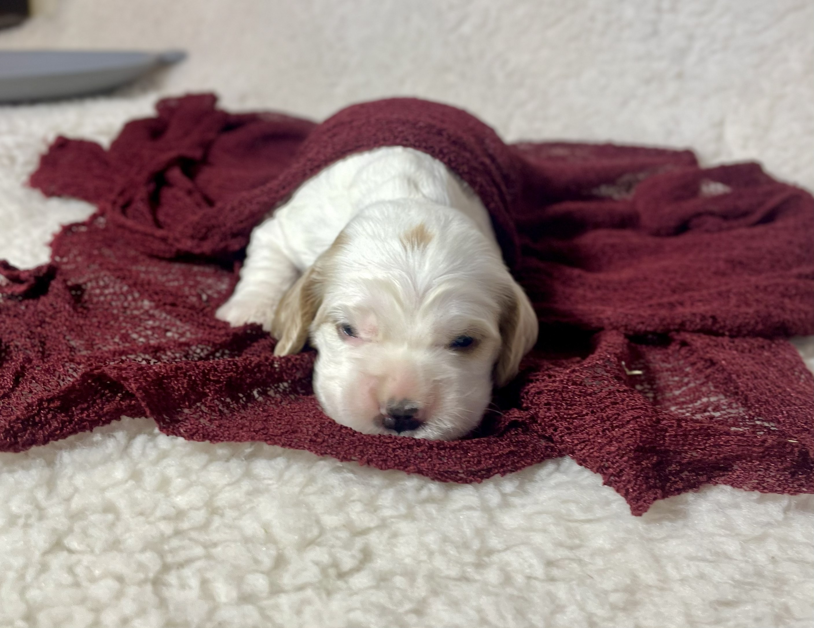 # 23 Abby/Simba - Pretty cream Cocker Spaniel female with a few red spots on head $2000 KIm