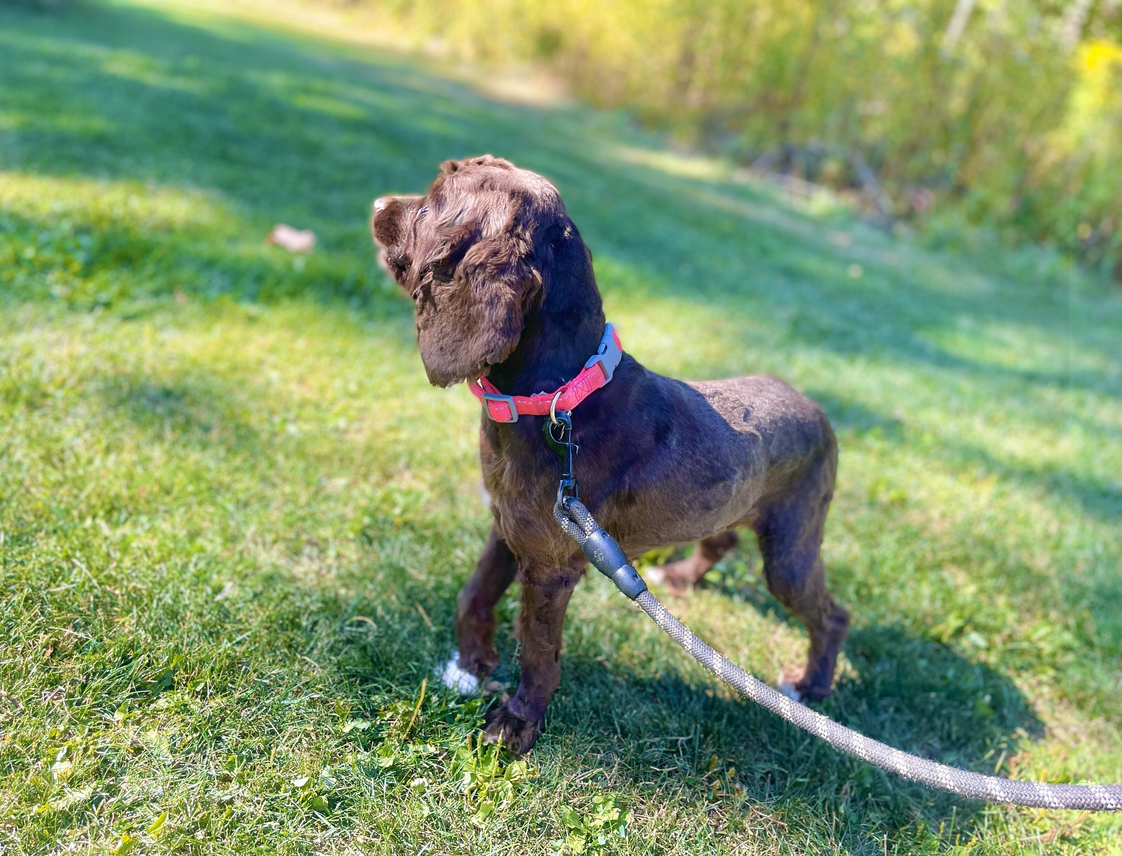 Mika is super friendly pure Cocker Spaniel. She has a deep smooth chocolate coat with a bright white chest. She loves everyone who comes in the door and is fantastic with kids!