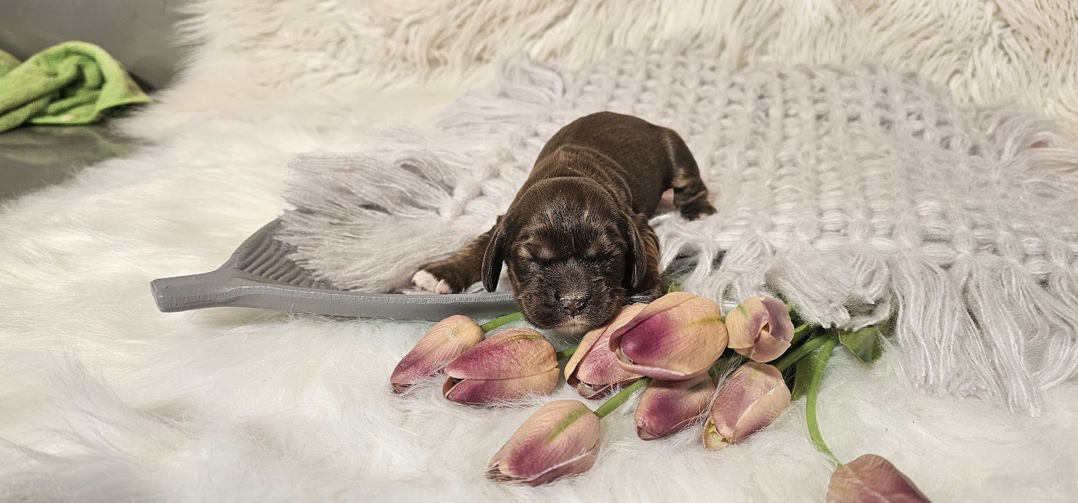 #9 pure cocker spaniel girl ,gorgeous Chocolate and tan , docked tail-$2000